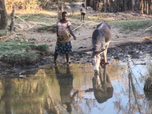 Num raio de muitos quilómetros, um furo com uma bomba eléctrica alimentada por um gerador ali colocado por fazendeiros da região, é o único local de onde sai água. O motor só funciona umas horas por dia. Mulheres e crianças carregam durante quilómetros recipientes de plástico para ali se abastecerem.