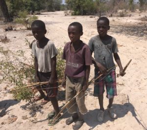 No caminho encontramos três crianças com arcos e flechas. Não estão a brincar. Mal sorriem. Mal falam português. A seca retirou as crianças da escola porque todos os braços são necessários para angariar recursos para a sobrevivência. Estas crianças andam mesmo à caça. De alguma galinha selvagem ou outro animal que lhes possa servir de alimento.