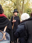 O ponto de encontro está marcado para as 11h00 no coreto do parque. Juntam-se cerca de 20 pessoas. Metade veio de Lisboa para assistir a este roteiro turístico que está muito próximo de também ser um espectáculo. O encontro com a primeira personagem acontece no telheiro (entre o lago e a antiga Parada). A caldense Inês Fouto (fundadora do Teatro Cenas) veste a pele do Gato Pires, um “senhor gato” que era o preferido de Bordalo e fala entusiasticamente sobre o seu dono. Esta é a primeira de três performances que irão decorrer ao longo da manhã.