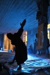 Bem ao centro da pista estão quatro amplificadores. Pendurados por fios no tecto vêem-se quatro microfones virados para baixo. O artista pega num desses microfones, dá uns passos atrás para ganhar balanço, ajusta a rota e larga-o. O microfone passa no amplificador e produz um som. Mas como está pendurado por um fio, ora vai à frente, ora volta atrás, e assim sucessivamente, produzindo som de cada vez que o faz. Repete o processo com os outros microfones e cria música a partir daí.