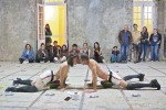 O performer encontrava-se por baixo de uma das arcadas, com um holofote apontado à cara e outro apontado ao texto, com um microfone à frente ligado a um amplificador. No andar de cima o público foi-se juntando à medida que a performance, que durou cerca de meia-hora, se ia desenrolando.