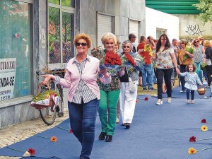 O ambiente está animado, as bandeiras coloridas penduradas na rua recordam-nos que no fim-de-semana se celebram os santos populares. Aos poucos vai chegando mais gente e, chegada a hora do desfile das lojas do Bairro Azul, são mais de 50 pessoas as que se encontram reunidas na Rua Sargento Peixoto (Praceta).