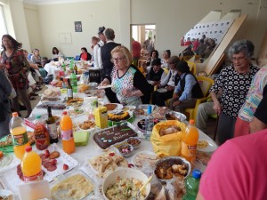 Por volta da uma da tarde a mesa da sede da associação já está bem composta, com frango assado, salgados, patés, pizzas, amêijoa, doces, bolos e bebidas. Só fica de barriga vazia quem quer porque comida há que chegue e sobre. Antes já desfilaram as bicicletas dos grupos etnográficos Boas Curvas (Ourém) e Amigos das Pasteleiras (Caldas e Óbidos). Foram seis as relíquias de duas rodas que abrilhantaram a festa.