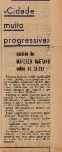 “Cidade muito progressiva – opinião de Marcelo Caetano sobre as Caldas” é o título de um artigo, na primeira página da Gazeta das Caldas do dia 17 e que aborda a já referida vindo do chefe do governo de então às Caldas entre o 16 de março e o 25 de abril.