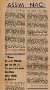 Na edição do dia 20 a Gazeta publica ainda um texto do então diretor do Museu de José Malhoa, João L. Saavedra Machado, que nele traçava a história do Museu. A peça fazia parte do roteiro lançado por ocasião do 40º aniversário daquele espaço.