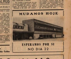 Trazemos ainda um curioso anúncio: é que no dia de saída do jornal foram inauguradas as novas instalações da Fiat nas Caldas, num edifício que, depois de anos ao abandono foi recentemente adquirido e recuperado, sendo atualmente um restaurante asiático, perto do Centro de Saúde. A empresa comunicou a abertura na Gazeta: “mudamos hoje. Esperamos por si. Dia 22”, lê-se no anúncio.