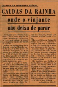 “Novamente o judo em Caldas da Rainha” faz manchete da Gazeta das Caldas, num artigo que recorda que “a primeira tentativa do lançamento da modalidade do Judo em Caldas da Rainha através do Futebol Clube das Caldas, abortou, como sabem alguns caldenses, e se dá conhecimento a outros”.