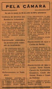 Relativamente ao abastecimento de água, a “Câmara debruçou-se sobre o problema da falta de água nos últimos tempos nesta ta cidade; analisou as causas – excesso de consumo devido ao calor, as regas, diminuição geral de produção dos furos de captação existentes e resolveu tentar solucionar o problema”, refere-se.