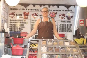 Alexandra Rego, dos Fofos da Rainha, contou à Gazeta das Caldas que a Feira dos Frutos estava a correr bem. “Tem estado dentro da normalidade e agora para o fim tem estado a melhorar bastante, talvez por ter ganho o prémio, mas também porque os bolos agora são feitos aqui na carrinha, à frente dos clientes, estão sempre a sair quentes e vem o cheirinho para a rua”, afirmou, acrescentando que a Frutos “é um bom evento para vender e foi o ponto de partida para este negócio”. Este ano apresentaram o bolo de chocolate com limão e cobertura de frutos vermelhos e conseguiu ganhar um prémio da feira. “Inspirei-me no tema da feira, que são os frutos, para fazer esta receita e achei que era uma boa combinação para o chocolate”, contou Alexandra Rego.