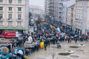Na tarde de terça-feira a chuva levou a que apenas os mais resistentes participassem, criando ainda assim uma grande e colorida moldura humana. Apesar da chuva, juntaram-se centenas de pessoas na Avenida 1º de Maio, umas abrigadas nas arcadas, outras debaixo de chapéus de chuva, a assistir ao desfile, com os corajosos marchantes. No final, os foliões juntaram-se em frente à Câmara para uma fotografia em conjunto e para bailar ao som do Dj Gabi. Este ano participaram nos desfiles quatro grupos musicais e um total de 22 carros. A câmara investiu cerca de 90 mil euros em toda a programação. Tinta Ferreira, presidente da Câmara das Caldas, mostrou-se bem-humorado e levou com fair-play as brincadeiras a propósito das obras de reabilitação urbana. “Temos consciência de que estamos a esburacar para depois arranjar, mas é perfeitamente normal e acho imensa graça a estas brincadeiras”, disse o autarca. Tinta Ferreira disse subscrever as reclamações acerca das dragagens na Lagoa de Óbidos e a modernização da Linha do Oeste. “São reclamações muito lógicas”, caracterizou. “Para o próximo ano vamos tentar melhorar os carros, envolvendo alguma assistência técnica e materiais”, mas continuando a ser as associações a fazer as coisas. “Quem participa no Carnaval das Caldas está verdadeiramente a divertir-se”, fez notar.