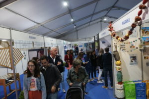 Mas antes de chegar às tasquinhas ou à parte dos concertos – que têm entrada paga à parte -, os visitantes passam por uma exposição que mostra a dinâmica de Peniche no que à economia do mar diz respeito. Projectos como o Smart Ocean (o parque de ciência e tecnologia do mar, que terá um investimento de 3,5 milhões de euros e que pretende fazer uma ponte entre a investigação e as empresas), têm aqui um espaço para se dar a conhecer. Entre os expositores está também a empresa caldense Bitcliq, os Estaleiros Navais de Peniche, as fábricas de conservas Nigel e ESIP, e outros negócios ligados ao turismo, como hotelaria, desportos náuticos e mergulho.